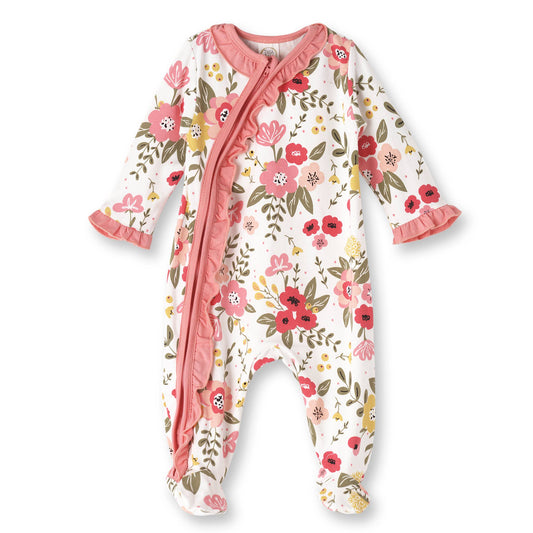Floral Garden Zipper Footed Romper